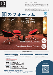 The necessary initial step for the proposal is to submit a Letter of Intent (LOI) to the contact address tfc_pg*grp.tohoku.ac.jp (change * to @) by August 15, 2026. An LOI should contain the desired type of program, a preliminary title and main ideas of the program with the names of possible co–organizers. It may be written in English as well as in Japanese. Then the coordinators of TFC will contact you to support your preparation. For assistance, advice, and suggestions at any stage of the preparation of a proposal, even before the submission of LOI, you are welcome to contact the TFC. We are happy to consult about preliminary ideas or draft proposals at an early stage.